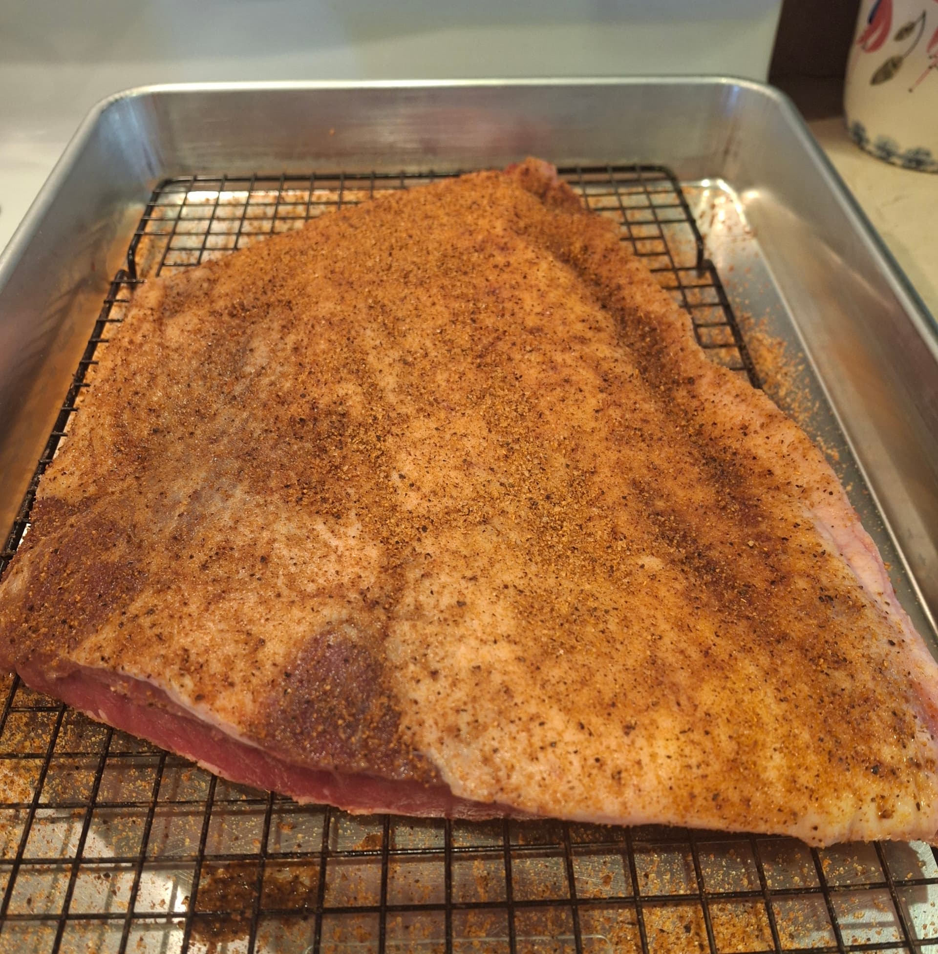 The recipe I used called it ‘bacon ribs’. They are brined, smoked, and candied.