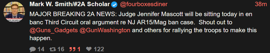 I BELIEVE (not yet confirmed) that oral arguments in tomorrow’s cases (very likely will included other cases besides Cheeseman v. Platkin - edit - scratch that, currently Cheeseman v. Platkin is the only scheduled case for tomorrow: https://www2.ca3.uscourts.gov/OralArgSummariesLanding/CasesDetails.aspx?hrngDt=20251015)