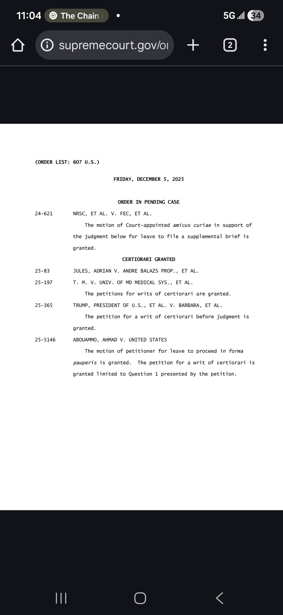 Nothing 2A related granted, but also nothing 2A related denied. Continue the wait: