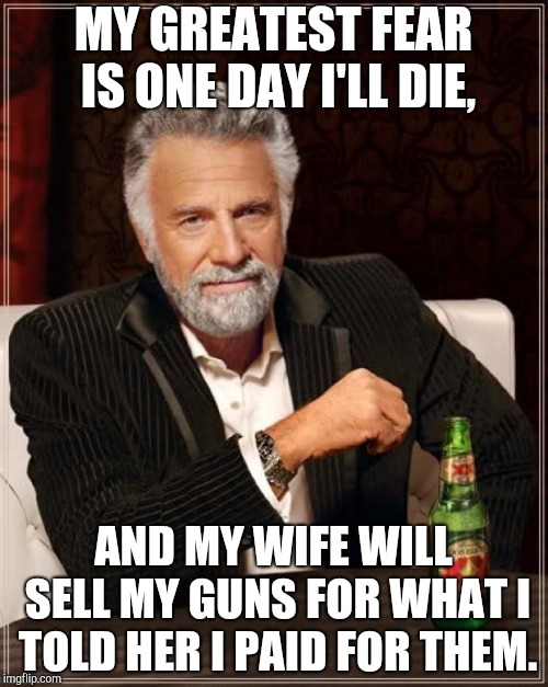I told my wife not to sell anything outright…. All goes up for bids so that she gets whatever the market dictates at that time…. She knows to look for a popular auction site or gunshop that deals on Gunbroker and everything goes to the highest bidder…. She knows how to negotiate so she knows to work out a deal on the fees….