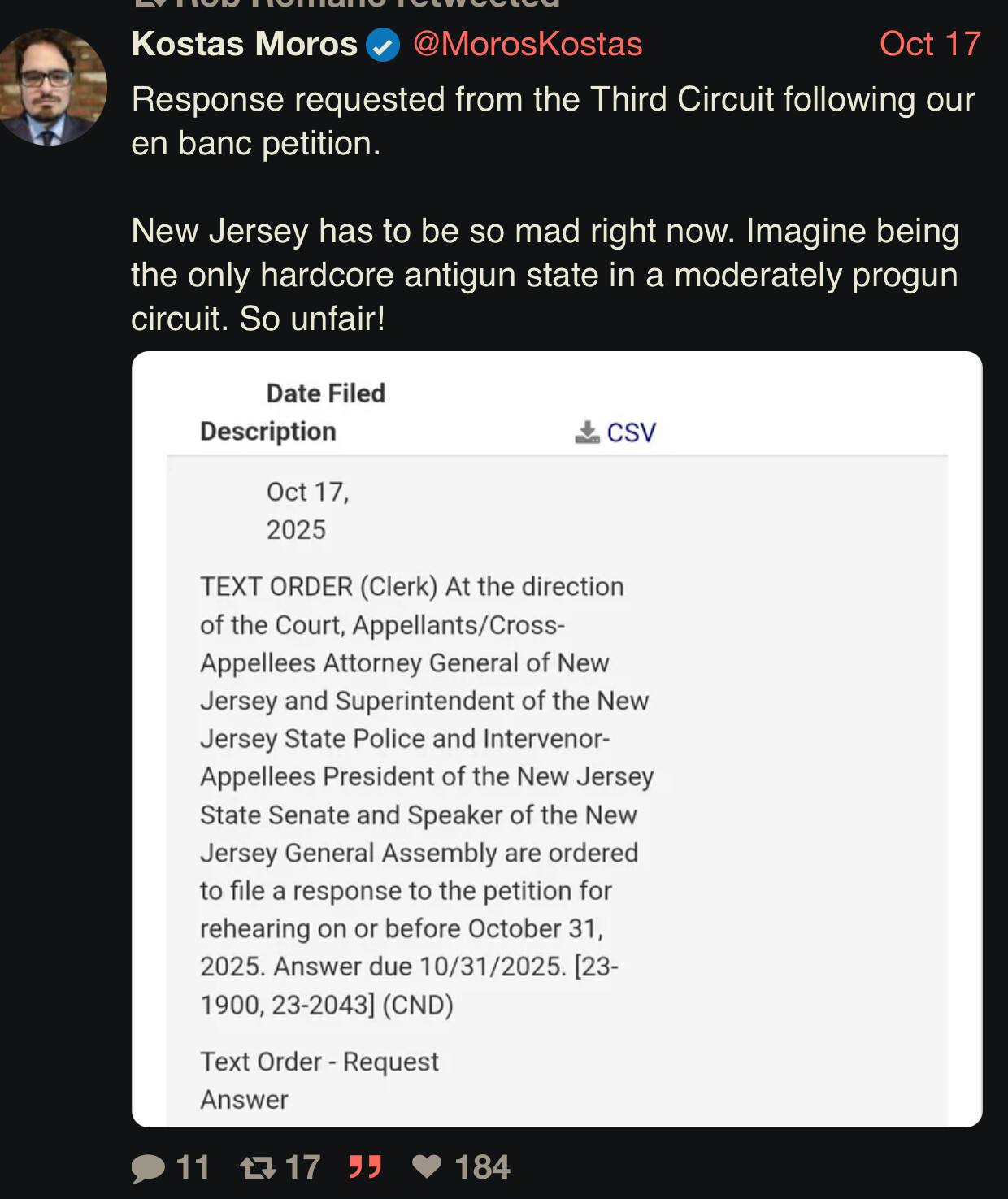 “We are not even close to being done with this,” said Mark Cheeseman, President. In the recent proceedings on New Jersey’s standard capacity magazine bans and bans of commonly owned semi-automatic rifles, the Third Circuit acted sua sponte to hear the cases en banc, taking them from a three-judge panel, prior to giving the panel a chance to rule. They did so to ensure such errors were not made. Here, too, the Third Circuit should immediately grant review of such a heavily flawed opinion, particularly in light of this panel’s absurd and unnecessary delay in these proceedings.
