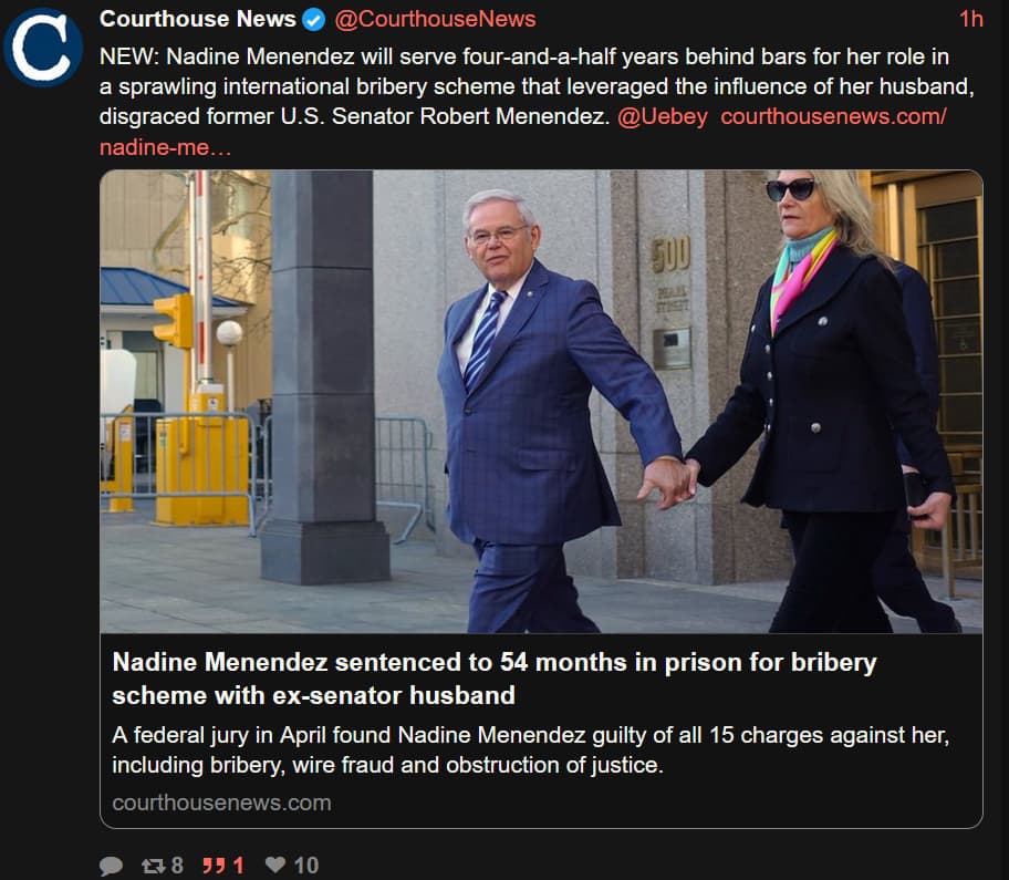 He will be known as prisoner No. 67277-050 at Federal Correctional Institution Schuylkill in Minersville, Pa., roughly three hours away from the home he has shared in New Jersey with his wife, Nadine Menendez, who is expected to be sentenced in September for her role in the scheme. Federal agents found bribes ranging from kilo bars of gold, a Mercedes-Benz convertible and more than $480,000 in cash during a search of the couple’s modest split-level home in Englewood Cliffs. …