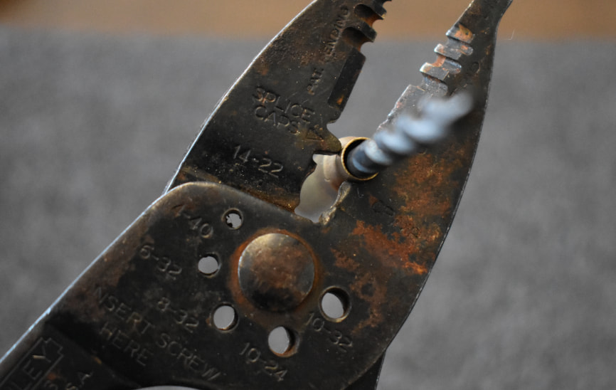 I learned this method is known as rotary swaging. The electricians pliers could not be better suited. It cradled and captured the neck without it jumping out of the notch. It took several passes but it worked like a charm.