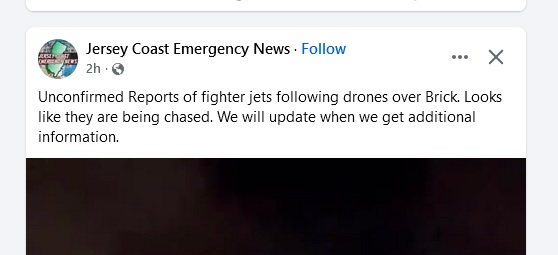 A couple of posts from the local Faceplant page. This was around 9:30 PM. Also, the local town Faceplant page in Ocean County had multiple residents posting around 10:30 PM seeing a bunch in the air… what the heck is going on??