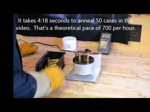 Annealing is another time suck for reloaders and can be expensive. It can be cheap too, but the cheap methods like using a candle or torch are not consistently uniform. I want to try this, or something similar. The video below shows one at a time, but with the right setup, I have no doubt I can anneal 100 cases a minute.