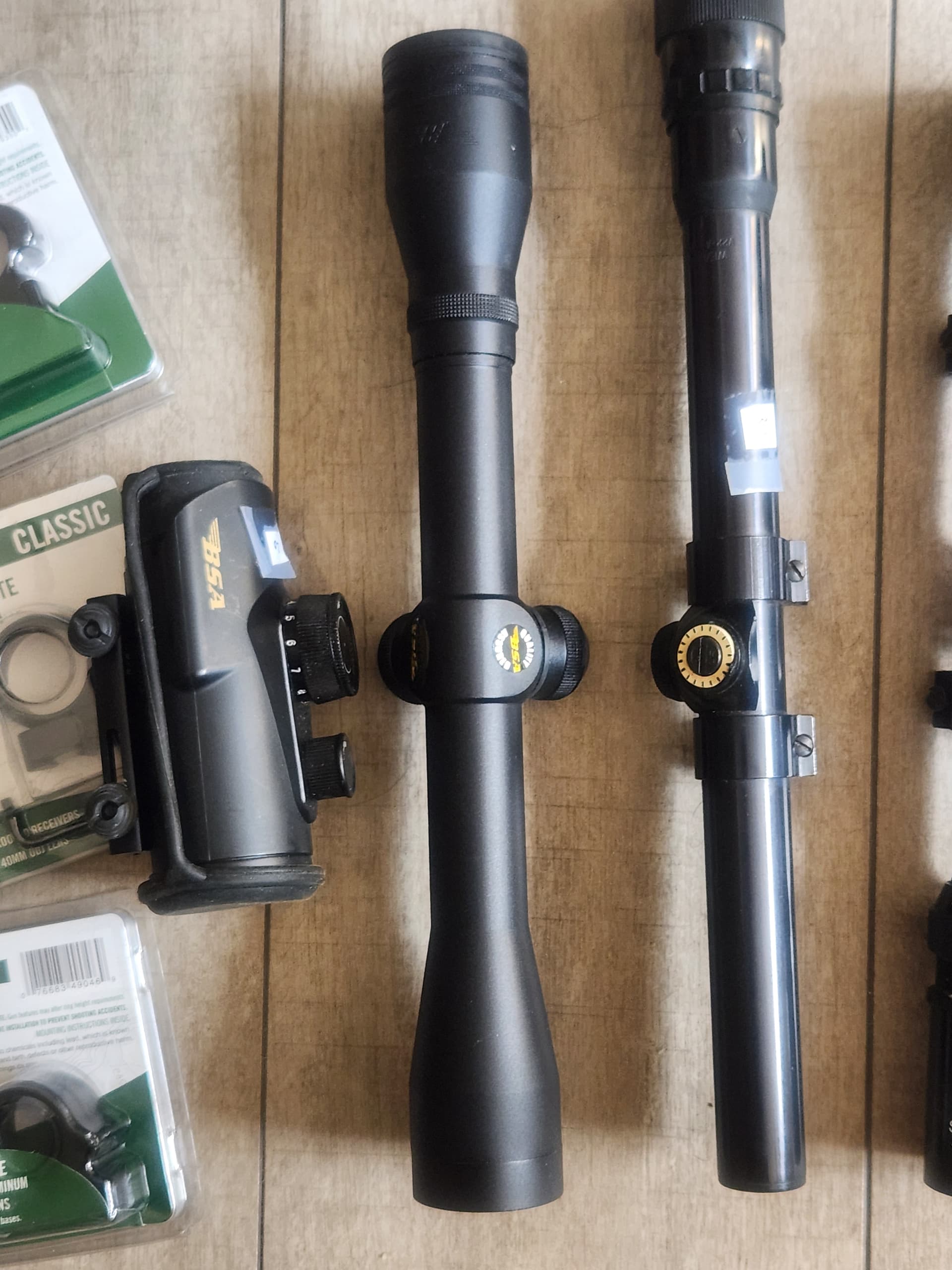 The scopes all have rings on them except the BSA which will take on of the new rings in the packages