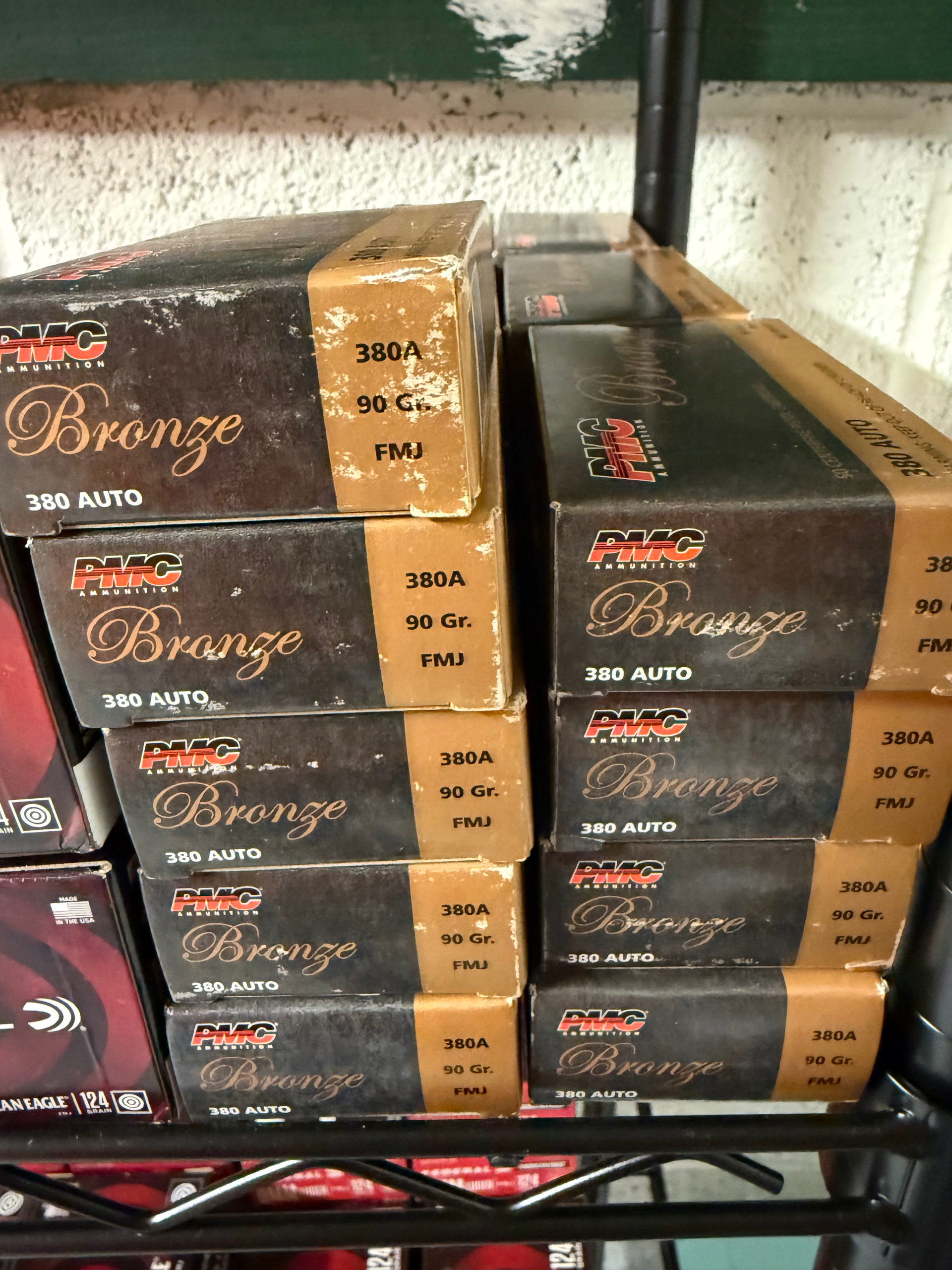 I have for sale 1,250 rounds of PMC 380acp 90 grain FMJ ammunition. 30 cents per round. I prefer to sell this in larger blocks. If purchasing the entire lot I will take a little off the price.SPF and pickup.