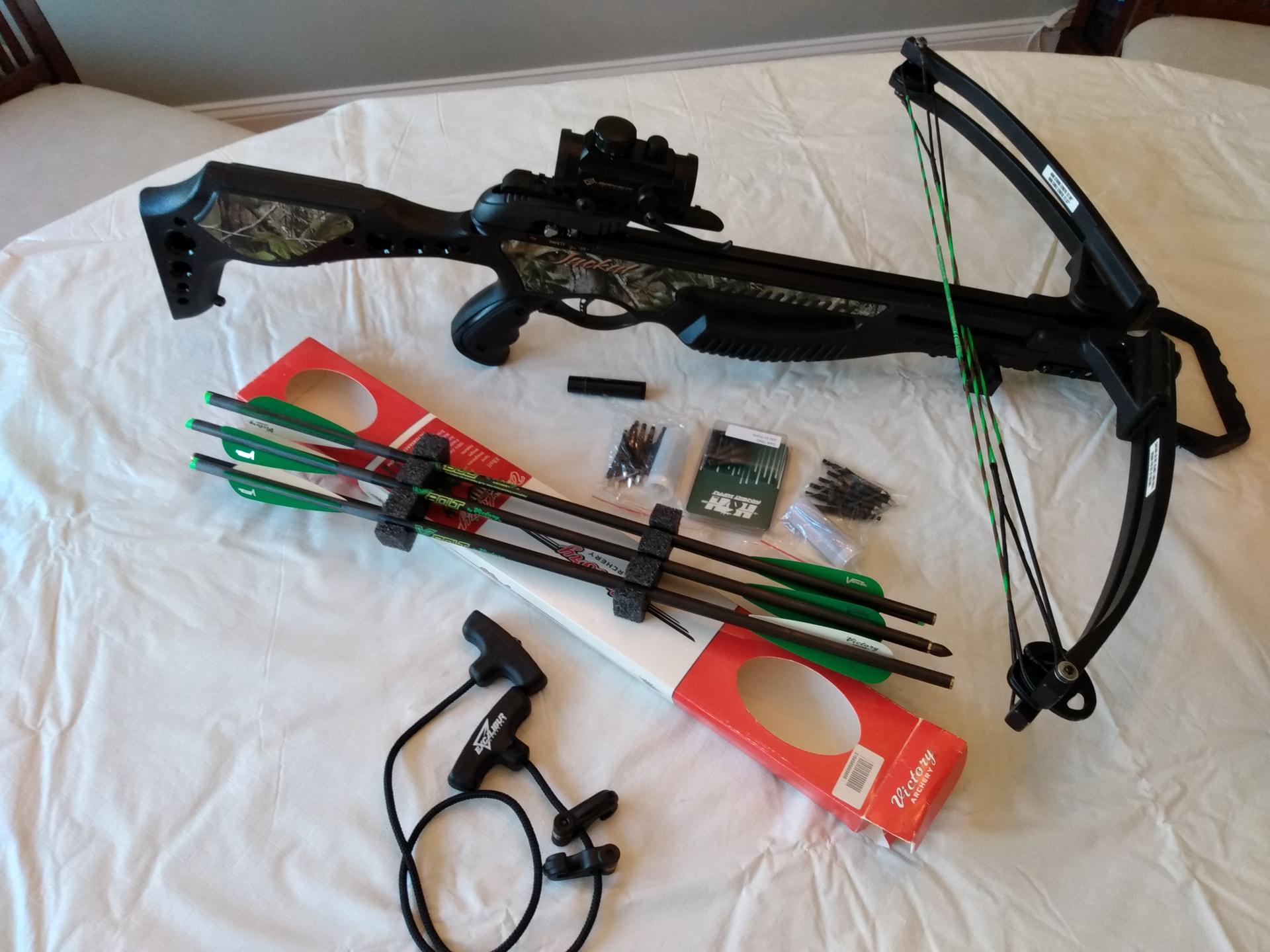 Brand new, never been fired, Barnett Jackal Crossbow. Bought this for wifey, to get her into shooting sports. She didn’t appreciate it.