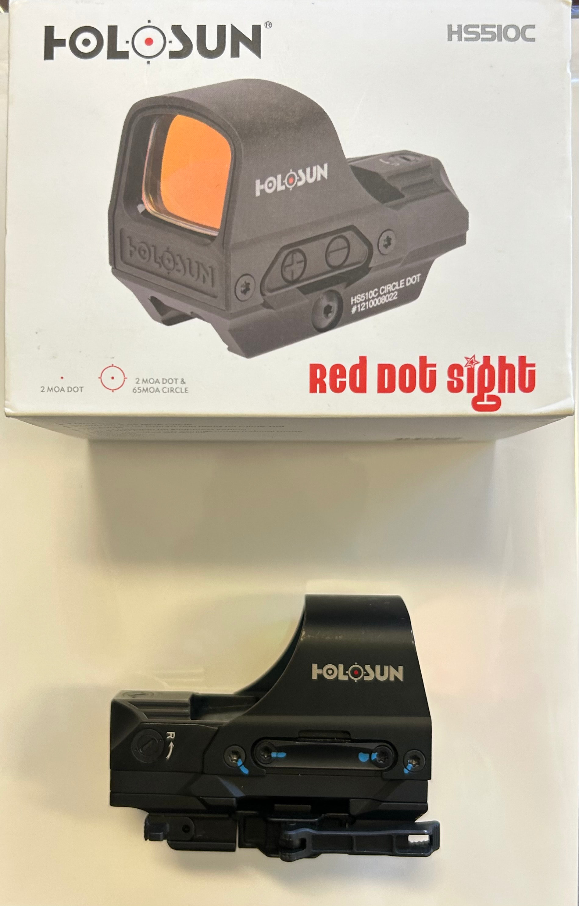 - Holosun 510C with spacer to make it lower 1/3 on an AR. Circle dot reticle is clear and crisp. Glass is perfect. Couldn’t get the camera to focus. It was mounted to a rifle that was never used. Got rid of the rifle and the optic is taking up space on my bench.