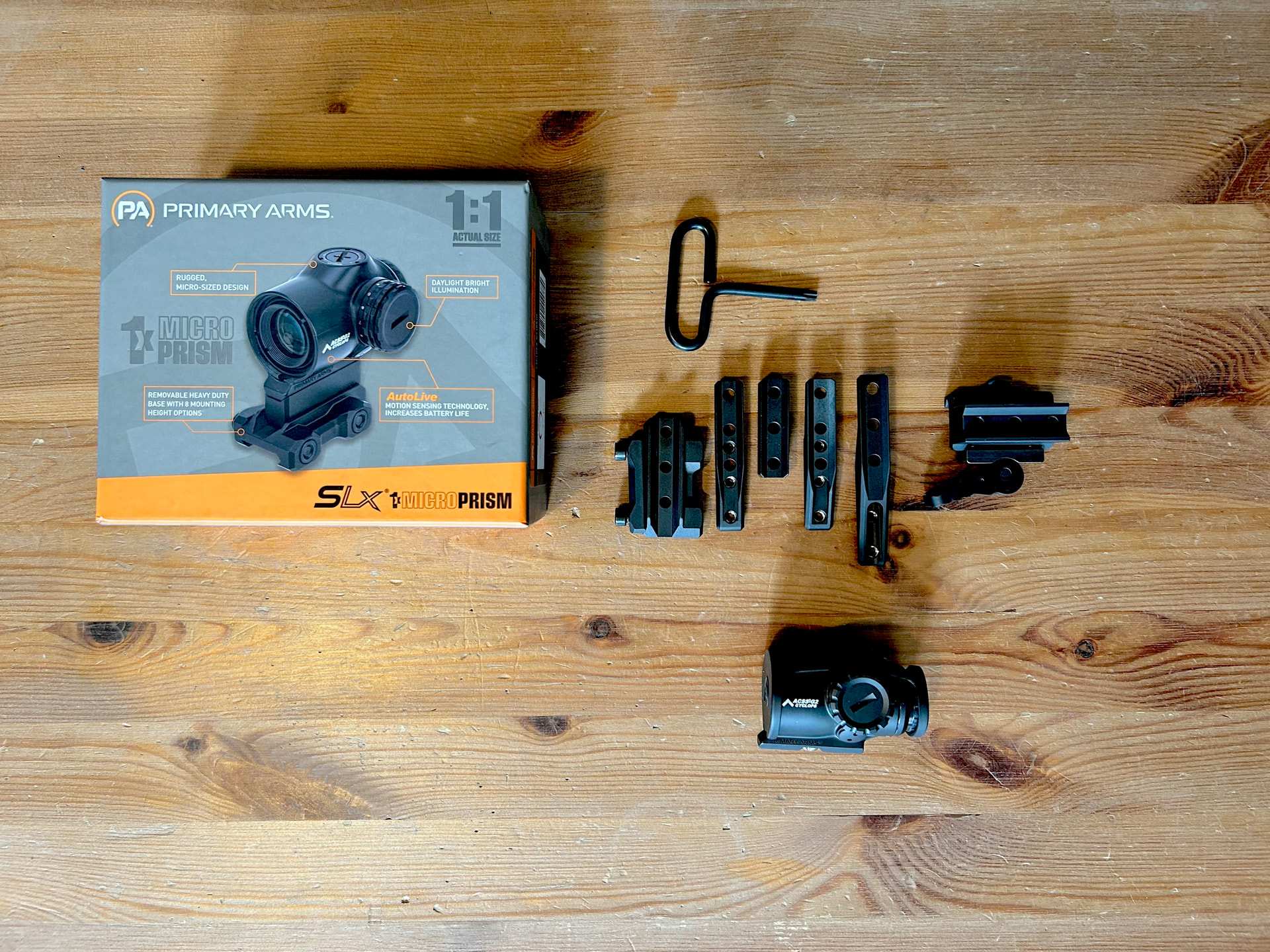 - Primary Arms 1x Micro Prism. LNIB. Another one that was on a rifle that was never used. Rifle is gone and the optic is sitting on my bench. It has to go.