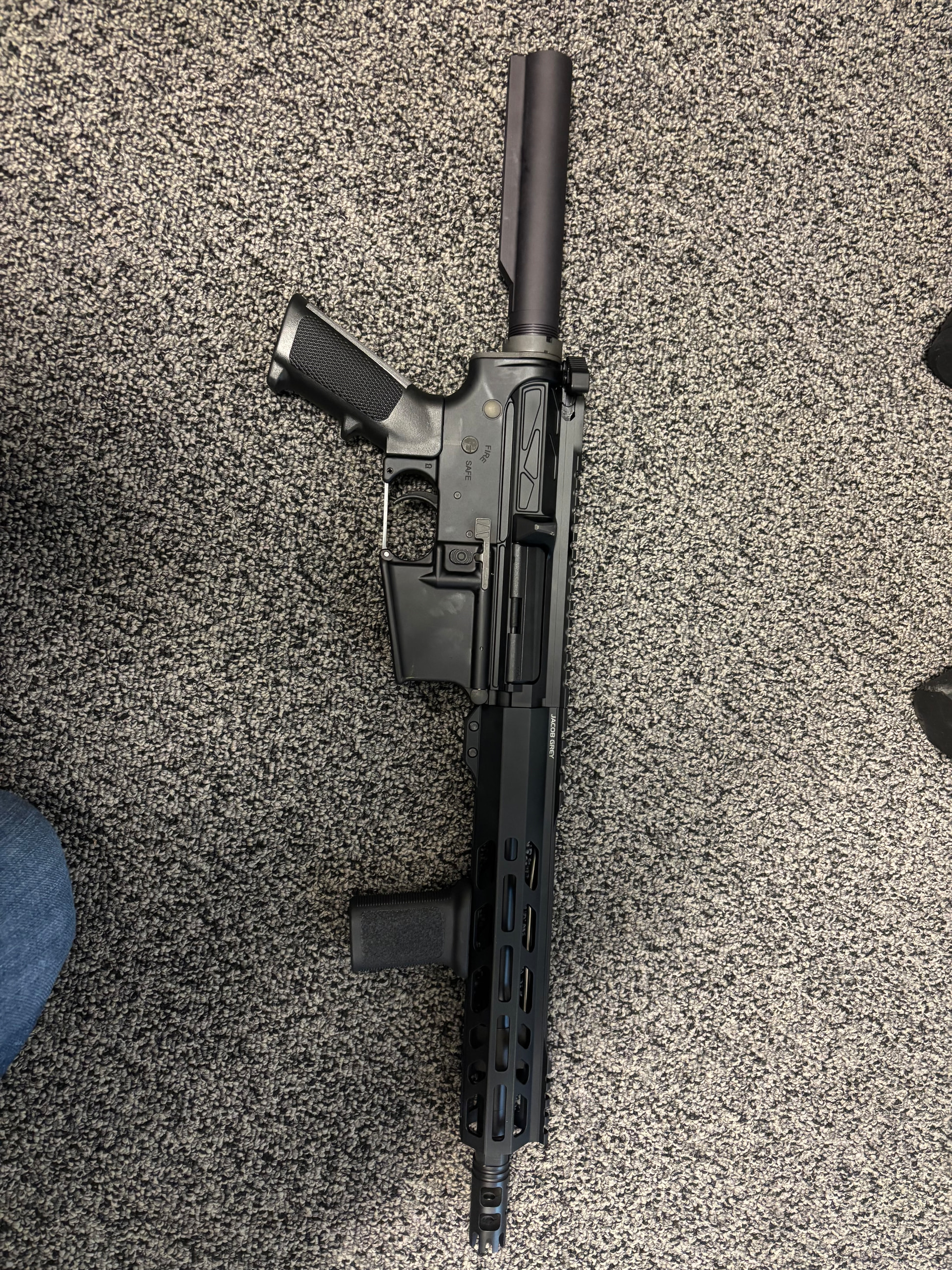 Jacob grey ultralight 10.5” welded muzzle device upper. Factory built complete group. C158 bcg & Ambi charging handle
