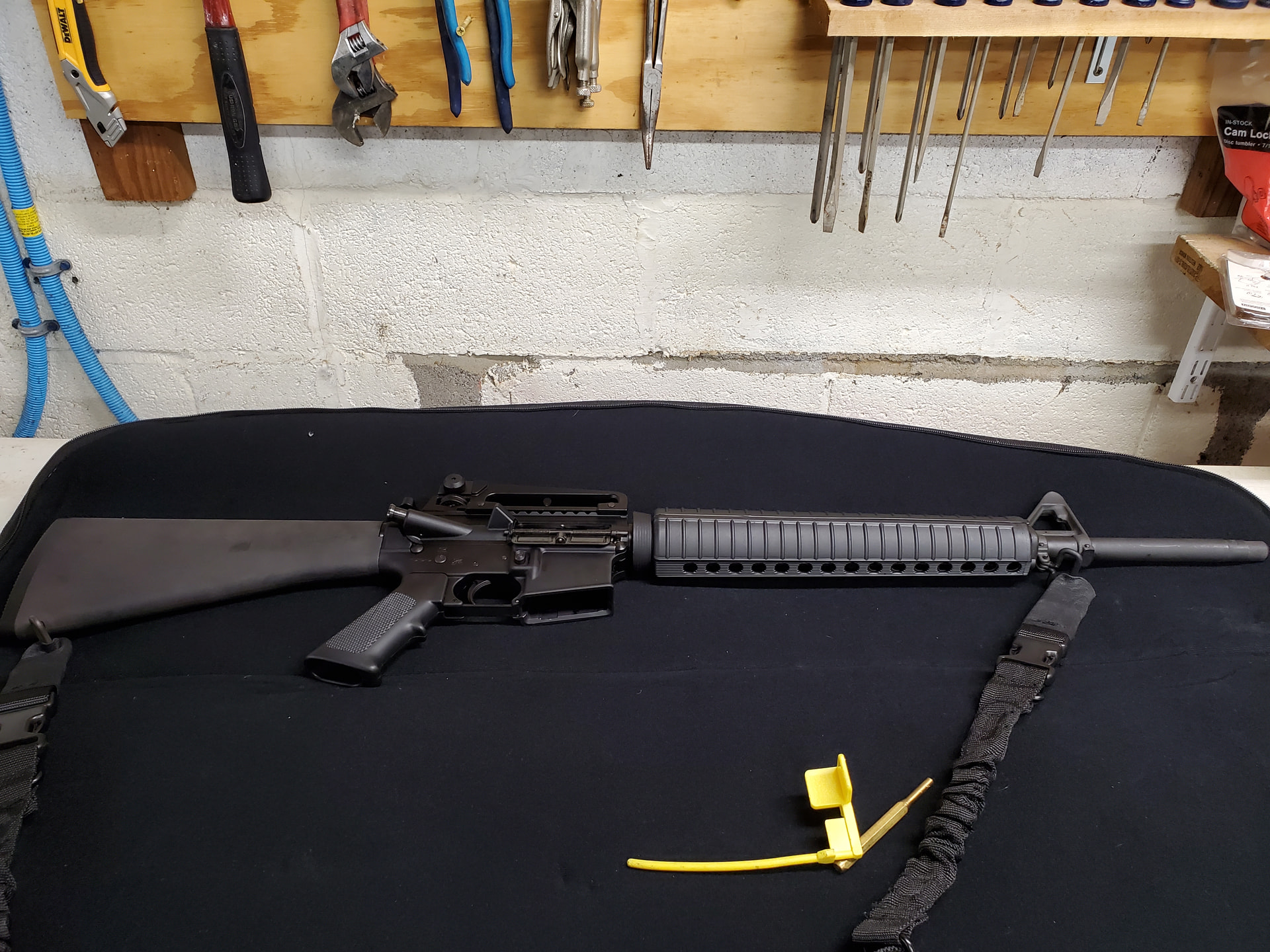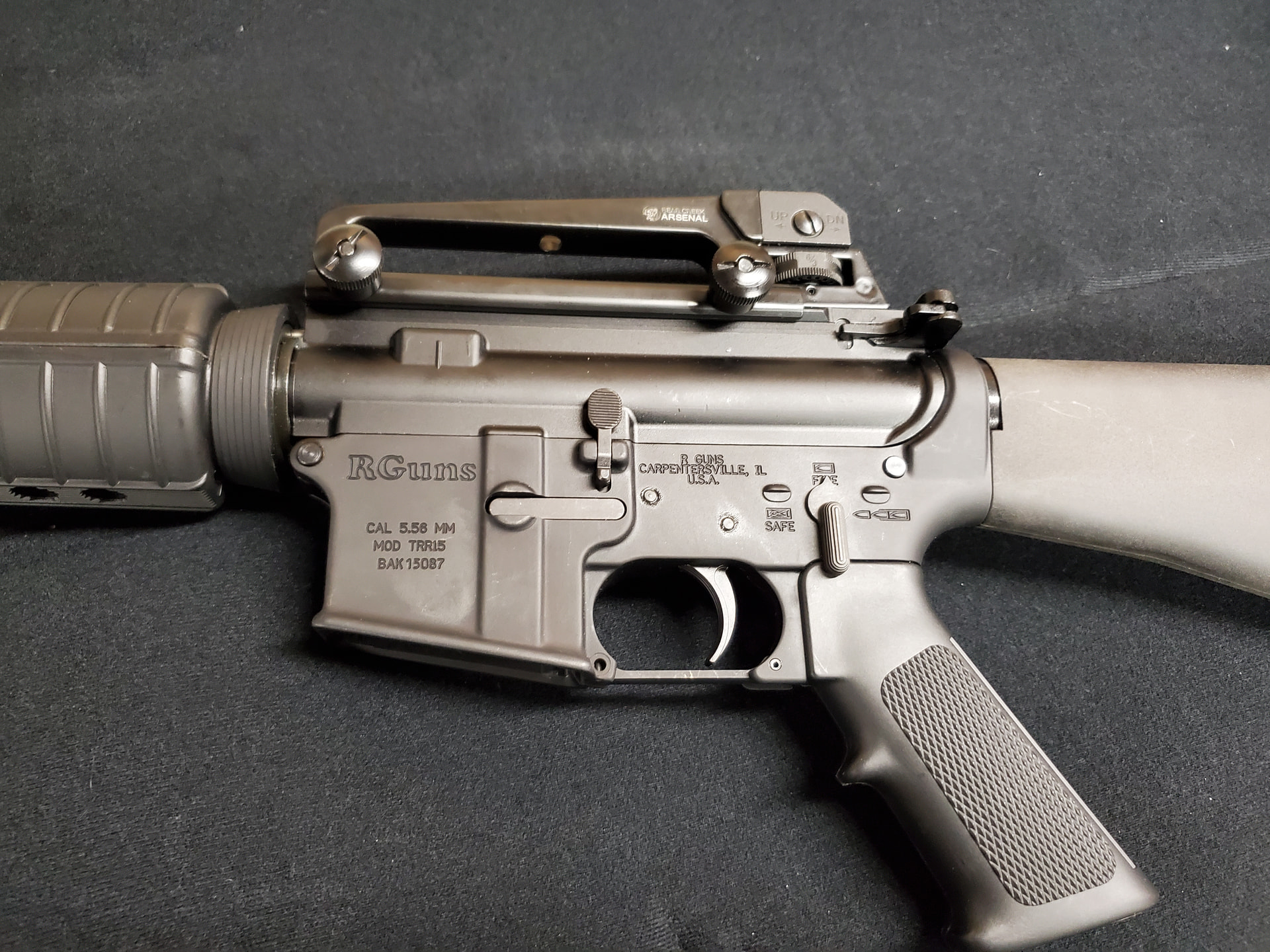 Up for sale today is an AR made by R-Guns. 20" barrel (1:8 Twist) chambered for 5.56mm. Rifle is set up as an A2/A4 clone. Looking to make room in the safe for other items so this is up for sale. Sale also includes 4 USGI Steel Mags (10 rounds) and a soft case, if interested. Asking $500 for all items. Buyer must have DL and FID. Buyer pays all transfer/shipping costs. Located in Woodbridge Township area. Will drive within hour of location otherwise must meet half way. First one to say I’ll take it wins the sale.