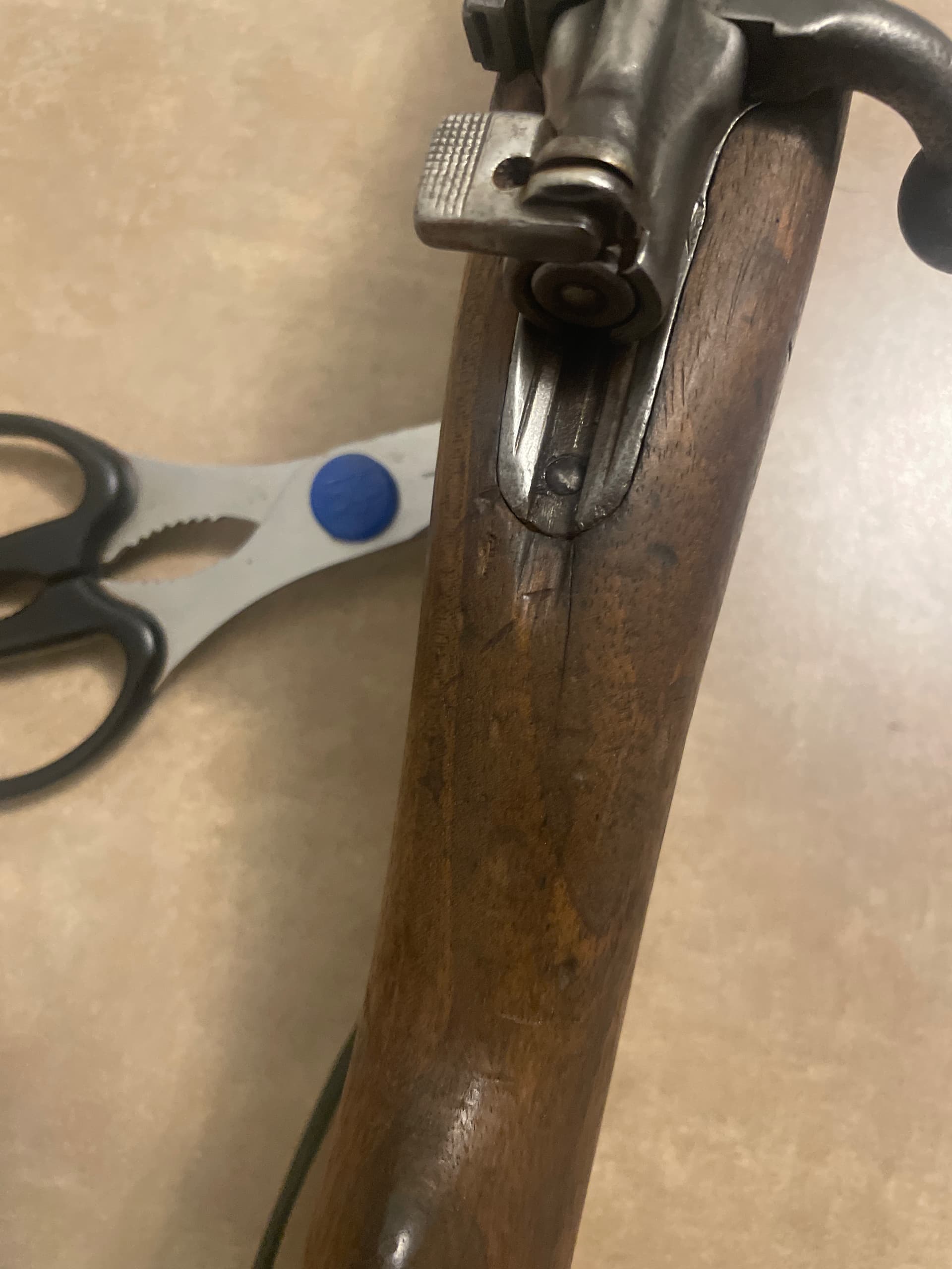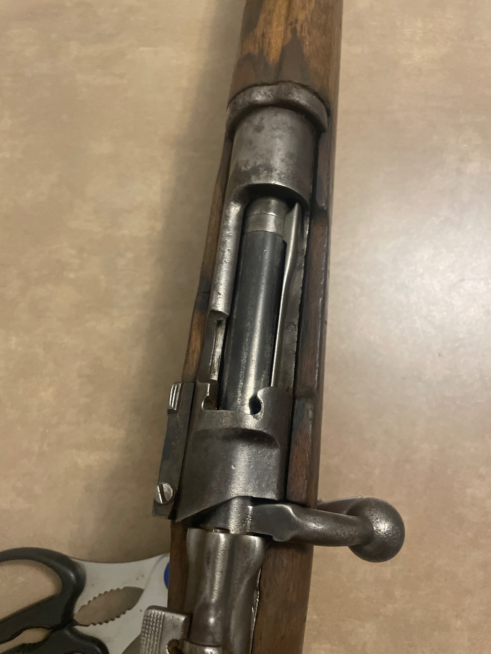 Spanish Mauser Model 1916 in 7mm Mauser. Rifle didn’t have much blue left. Stock is rough with a small crack but otherwise intact. Bird is rough. Like most 1916’s in 7mm Mauser it seems like the bore is oversized. A reloader could load for it, but factory ammo won’t group. $225 located in Clifton always open to trades